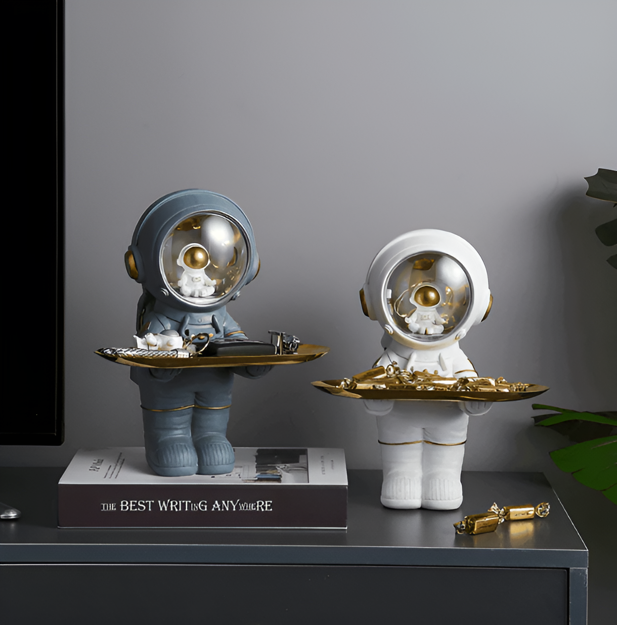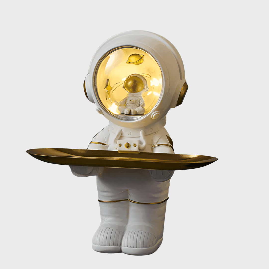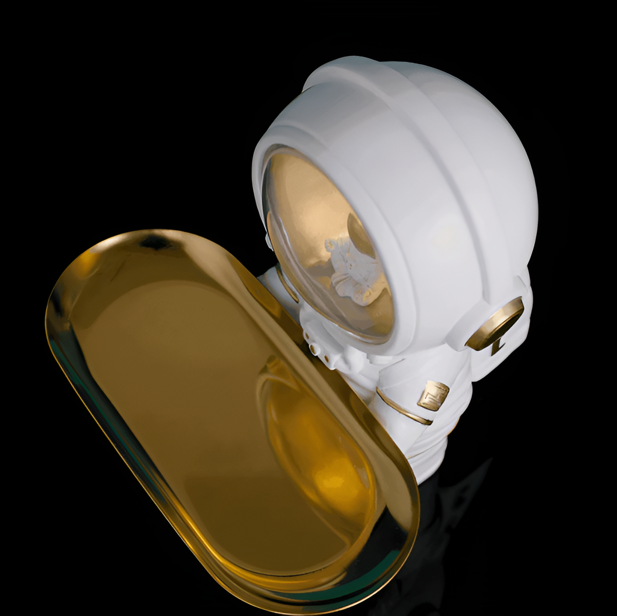 Het bijzondere astronautenontwerp met subtiele verlichting onder de helm zorgt voor een magische uitstraling. Dit maakt CosmoCatch niet alleen een handige organizer, maar ook een echte eyecatcher die gegarandeerd gespreksonderwerpen oproept.