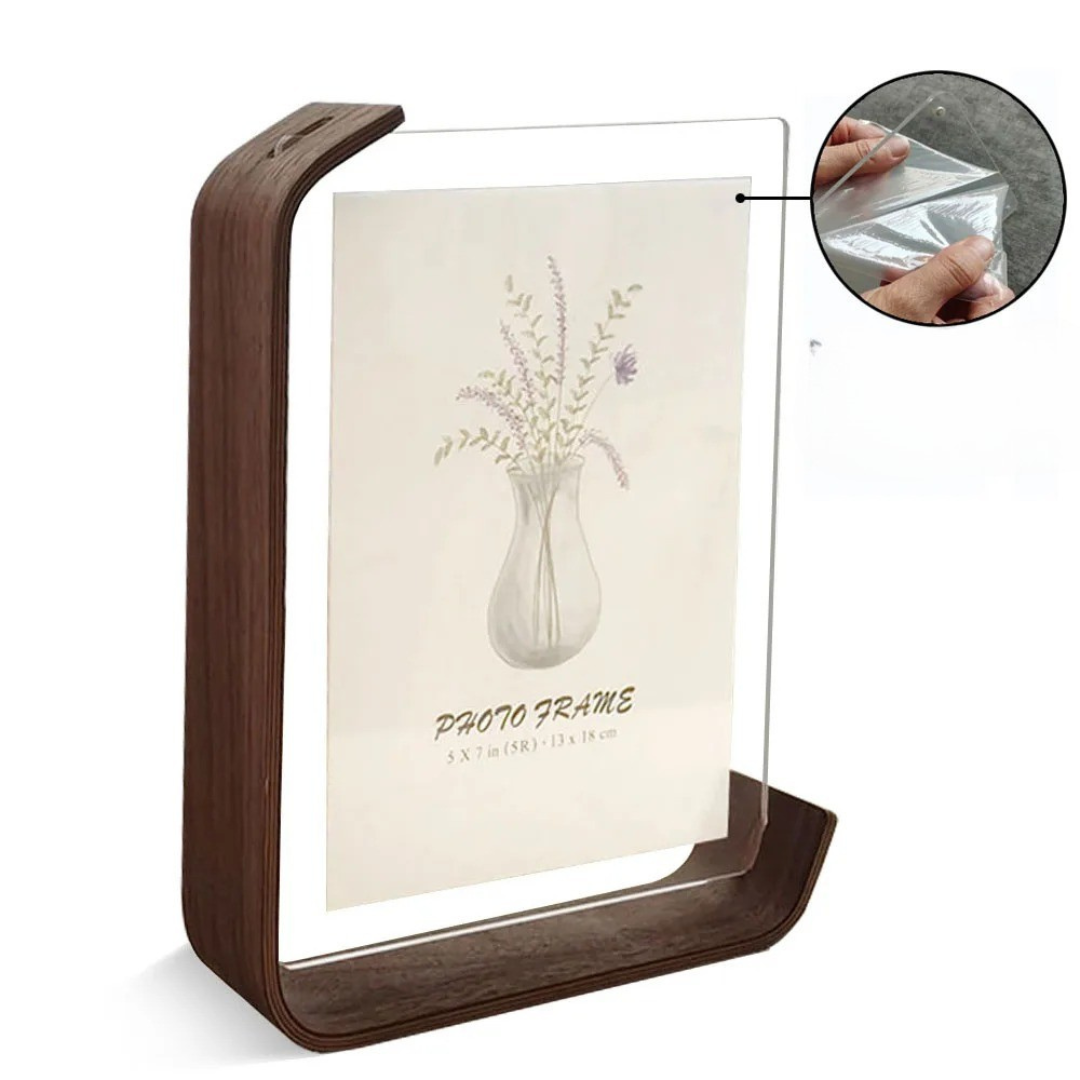 VistaWood – Dubbelzijdige Acryl Fotolijst met Houten Basis